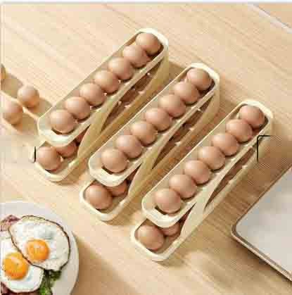 রোলডাউন এগ ডিসপেনসার প্রতিদিন ডিম সংরক্ষণ এবং ব্যবহার করার জন্য একটি স্থান-বান্ধব সমাধান প্রদান করে। এই রোলিং এগ অর্গানাইজারটি 12 থেকে 14টি ডিম যেকোনো আকারের ফ্রিজে রাখার জন্য তৈরি করা হয়। এটি আদর্শ, বড় এবং জাম্বো ডিমের জন্য কাজ করে।